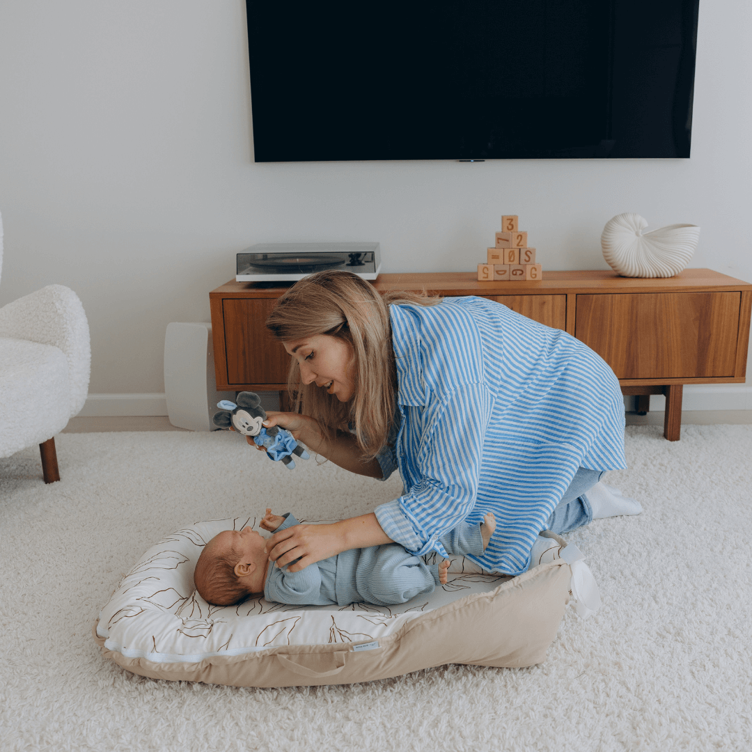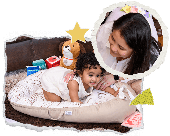 Find someplace comfortable, lay your child down, and focus your attention on them during playtime—anywhere.