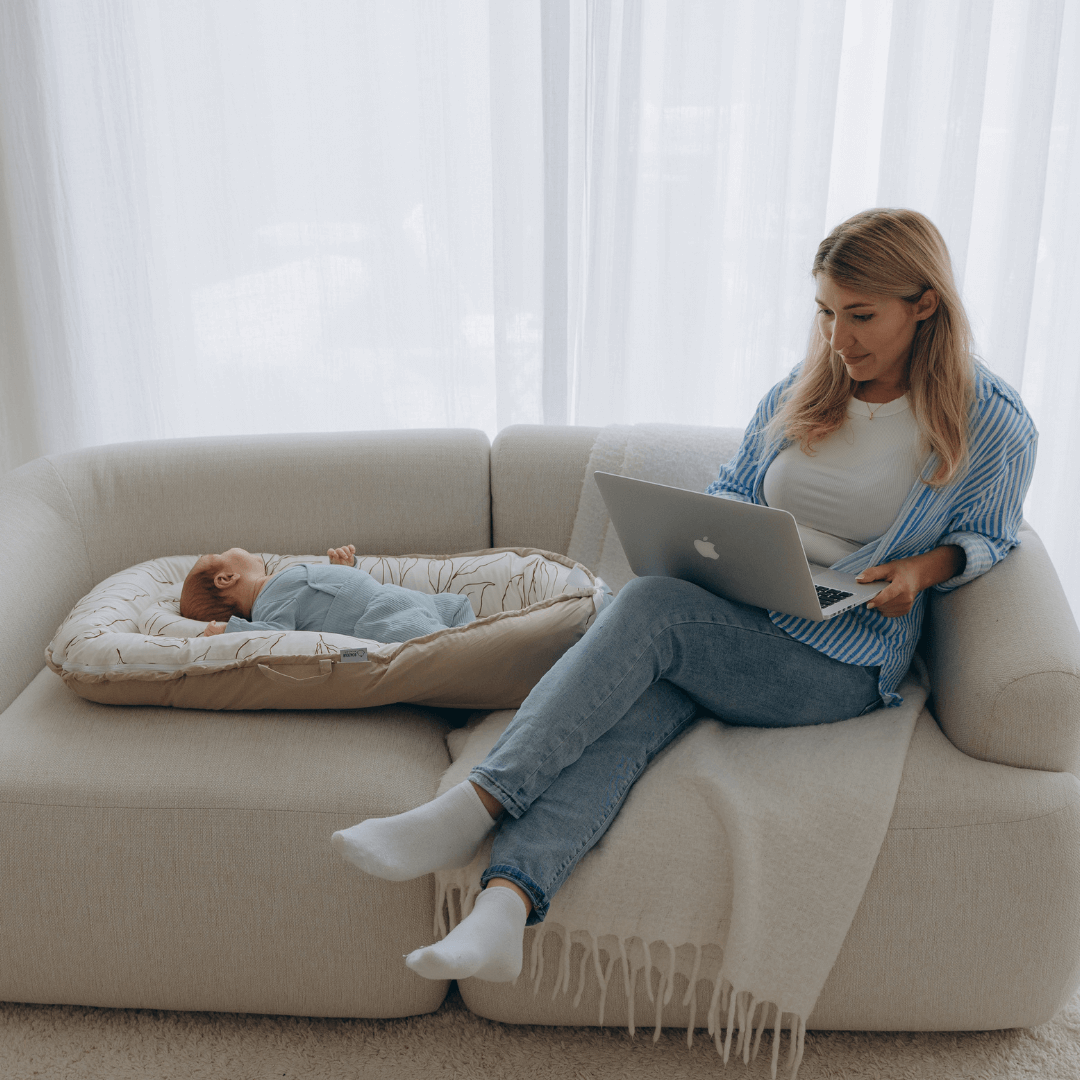 Literally, keep your child next to you as you're working from home, where they'll lay comfortably & safely.